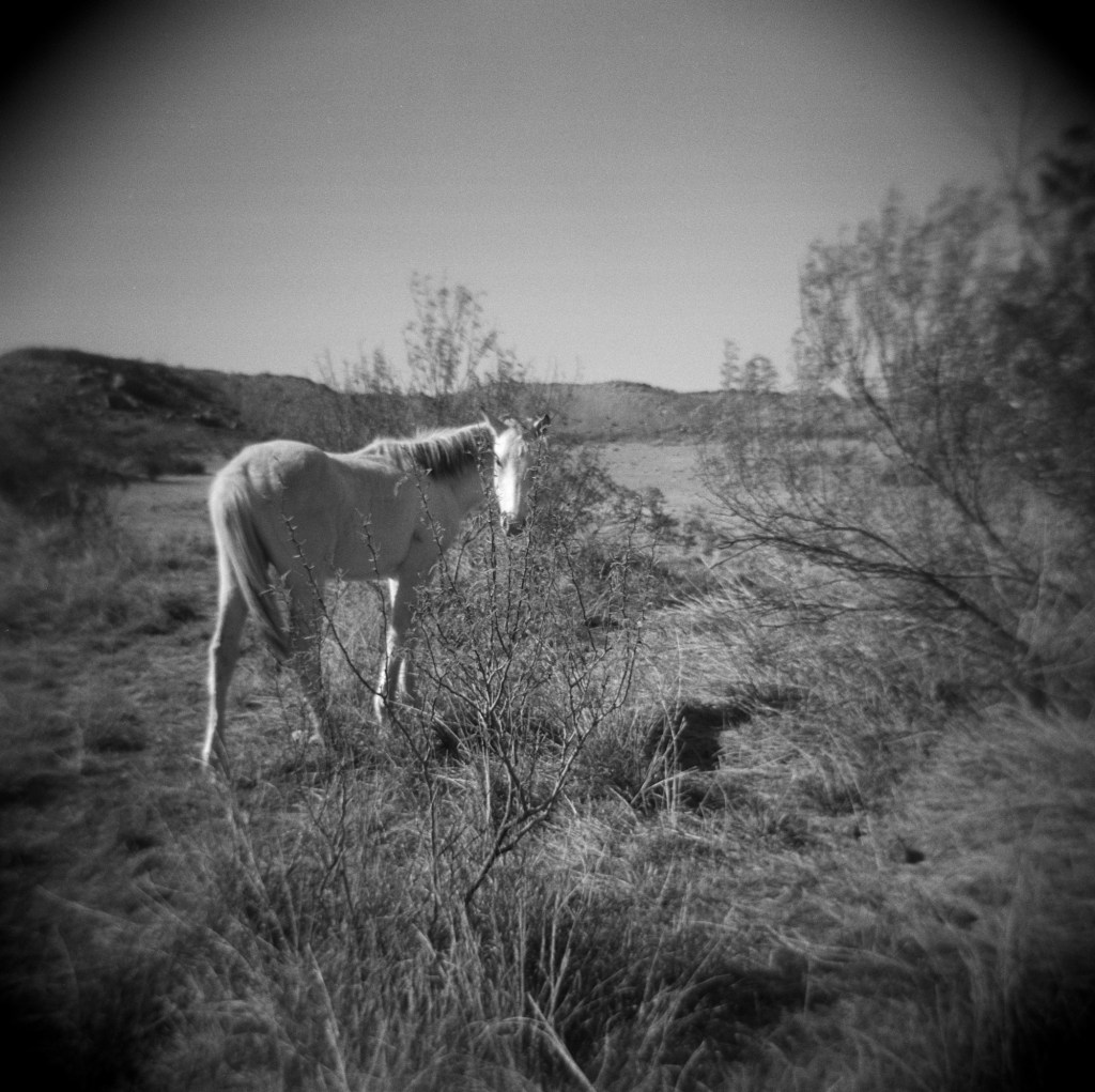 In the shimmer of the desert afternoon, heat radiating from the scrub and brush, pulsating off the rocky ground, they rose like a mirage. A mild, friendly duet, rough weathered coats dusty with travel, they kept their heads down, busy. Until they didn’t, and raised kind knowing eyes to me, only a few feet away, acknowledging a fellow traveler, a fellow soul full of hope and breath. Later, at home, I reveled in the light of their lives, held for a time in the emulsion of creation, bonded to my memory in the luminosity of silver gelatin magic.